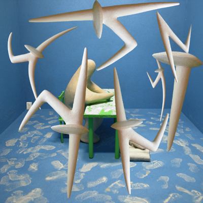 the stool becomes a throne, forms are perspectively distorted